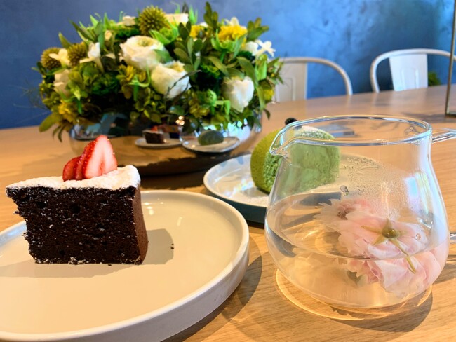メインの建物1階にあるカフェ&バー「THE GARDEN(ザ・ガーデン)」は、日中は開放的なティールーム、夜は落ち着いた雰囲気のワインバーとして着実にファンを増やしています。この「THE GARDEN」では「fuacha」の花茶のメニュー提供が始まっています。