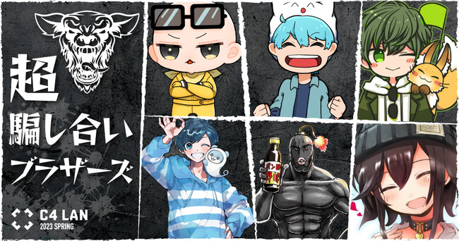 「C4 LAN 2023 SPRING」の開催2日目となる4月29日(土)18:00より、「しょぼすけ」をはじめ、兄弟の如く仲良しのストリーマー6名が、本気で相手の心を探り合うガチバトル「超騙し合いブラザーズ」の開催が決定しました。参加者は、「しょぼすけ」「かげまる」「Is」「バケゆか」「ポン酢野郎」「はたさこ」の6名です。所謂、人狼ゲームと呼ばれるジャンルのゲームで騙し合いが行われます。どんなゲームタイトルがプレイされるのかは、続報をお待ちください。なお、残念ながら当日会場に来られない方のために、各ストリーマーの公式チャンネルにて生中継いたします。