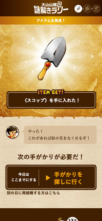 参加者は人々の笑顔を取り戻すため、各地に残された手がかりの謎を解いて「妖の花」を探す旅に出かけます。次々と課されるミッション+アイテム集めでクリアを目指すRPG風の楽しい仕組みとなっています。
