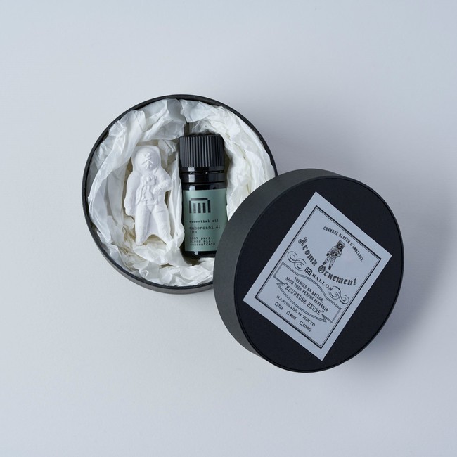 全てフランスで天然素材から生まれた香りは、MABOROSHIと調香師バルナベ氏の共作により生み出されています。バルナベ氏が日本の原風景からインスピレーションを得て作られた3種類の『essential oil』は、それそれの世界観を持ち奥深く立体的で、香る人を優しく包み込み、心の静けさと調和をもたらしてくれます。