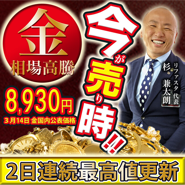 米銀シリコンバレーバンク(SVB)の経営破綻の影響により異例の上昇を見せた。買取専門店「リファスタ」では金売却の依頼が殺到。約11ヵ月振り、2日連続の過去最高値更新で、金に更なる注目が集まっている。