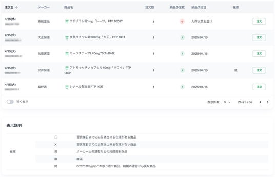 -発注機能:発注履歴や代替品検索機能からの発注