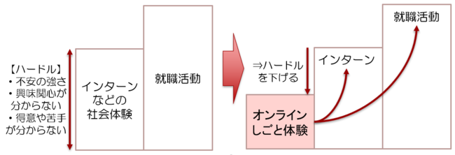 個人の目的や個性に応じたオンライン就業体験を通じて、就職への不安や難しさを感じている方々も含めた幅広い就業希望者のキャリア開発、就職実現を目指す