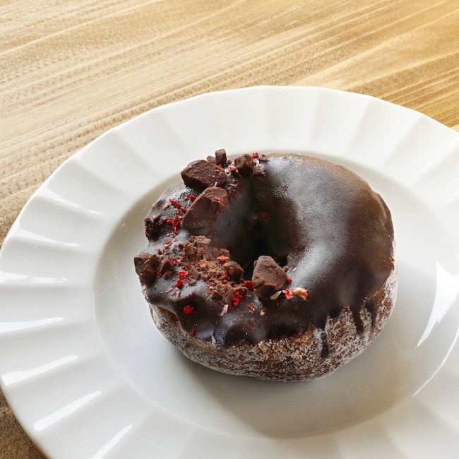 ミサキドーナツのこだわりカスタードと、VANILLABEANSが厳選したドミニカ共和国産カカオを合わせた、特別なチョコカスタードを使用した数量限定ドーナツです。ミサキドーナツの特徴である、ふんわりとした口当たりの優しいドーナツ生地と、とろりとした濃厚チョコカスタード、複数の食感をお楽しみください。さらにトッピングにはアクセントとしてVANILLABEANSのチョコレートと、ミサキドーナツのブランドカラーをイメージしたドライストロベリーを散りばめました。