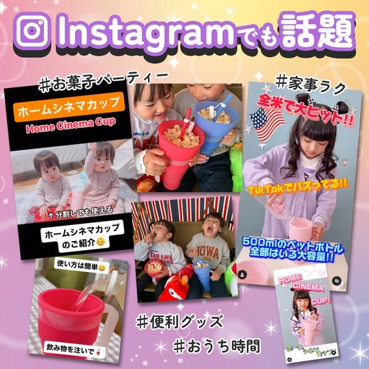 自宅で映画鑑賞中やドライブ中でも両手をふさがれずドリンクとスナック菓子が同時に楽しめるホームシネマカップが2024年3月上旬に日本で販売が開始された。