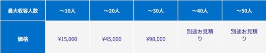 - 最大収容人数や会場レイアウトのカスタマイズは別途相談になります。