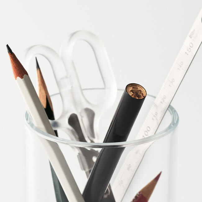 ペンやはさみなど、他の文房具と違和感なく共存する長い印鑑の提案。印鑑のサイズは「印を押す行為の社会的な意味」や「人の手のサイズとの関係性」によって 導き出されたものだと考え、「人の手のサイズとの関係性」よりも「他の文具との関係性」に注目。