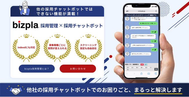 ~ビズプラ(bizpla)採用管理のチャットボットは店舗や職種ごとに質問の出し分けが可能。応募者のスクリーニングも自由自在。~