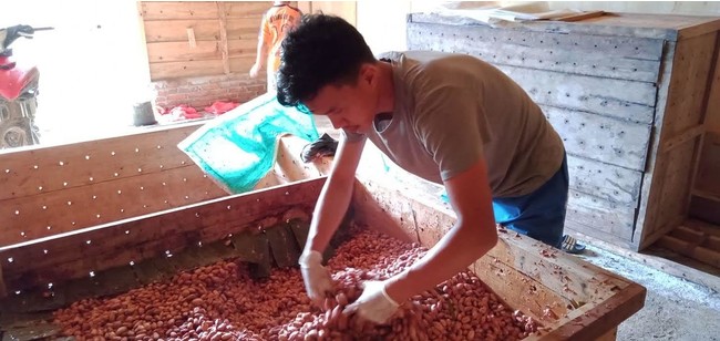 本商品「テリーヌショコラ」で使用しているカカオはインターナショナルチョコレートアワード(ICA)等、多くの賞を受賞したWhosecacaoのスペシャルティカカオ豆を使用しています。Whosecacaoが直接契約しているカカオ農園で栽培をしたこのスペシャルティカカオ豆は、農園とともにカカオの収穫から発酵工程までの管理を丁寧に行い、非常に風味が豊かで華やかです。特に発酵の工程ではノウハウを蓄積しながら行っているため、他では味わえない特徴的なカカオの個性を引き出しています。