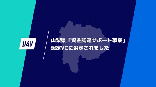 D4V(Design for Ventures、本社:東京都港区、CEO:高野 真)は、山梨県が実施する令和7年度「資金調達サポート事業」において、認定ベンチャーキャピタルに選定されました。これにより、山梨県内のシード・アーリーステージのスタートアップに対し、弊社と県による協調出資(最大2,000万円まで、J-KISS型コンバーティブル・エクイティ)を通じた資金供給と、事業成長・地域定着に向けた伴走支援を実施してまいります。