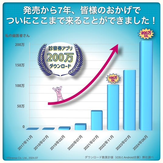 歯科医院の診療と経営の両面をITでサポートする株式会社ストランザ(本社:東京都港区、代表取締役社長:西島 彰一、以下「ストランザ」)の提供する患者向け診察券アプリ「私の歯医者さん」が2024年6月7日に累計200万DLを達成いたしました。