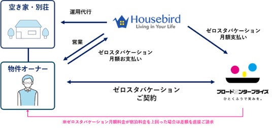 宿泊施設の開業支援を手がけるハウスバード株式会社(本社:東京都新宿区、代表取締役:浅見 清夏、以下「当社」)は、初期導入費用ゼロ円で設備やリノベーションを提供するファイナンススキームを展開する株式会社ブロードエンタープライズ(本社:大阪府大阪市、代表取締役社長:中西 良祐、東証グロース市場上場、証券コード:4415、以下「ブロードエンタープライズ」)と業務提携し、新サービス「ゼロスタバケーション」を開始いたします。