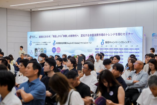 中国大手の動画共有プラットフォーム・抖音(Douyin)の越境電子商取引(EC)事業「抖音電商全球購(Douyin EC Global)」は7月30日に、東京都内でセミナーを開催した。同社の事業責任者のほか、このプラットフォームで化粧品などの対中越境ECで実績を挙げた日本企業の経営者らが登壇し、約300人の聴衆と中国消費市場の最新トレンドを共有した。