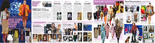 ファッション・トレンドは、いまや洋服の枠を超えて化粧品から家電、車、住宅、ライフワークなど生活関連のあらゆる分野に影響を与える最も重要な情報です。次なるステップを模索する時代、指針となるコレクション・トレンドは、時の空気を敏感に映し出しながら何をすべきかを個性豊かに提案します。世界のファッションをリードするパリ、ミラノ、ロンドン、ニューヨークのコレクションを取材し、豊富なビジュアルと映像を駆使して、トレンドを詳細に的確に分析、解説します。