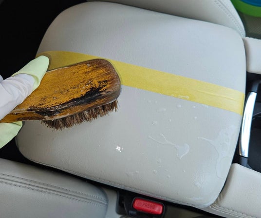 汚れが溜まりやすいパンチングレザーもこの通り!(右が清掃後)