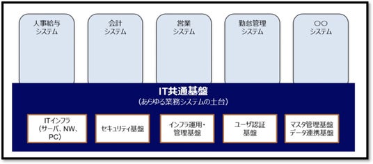 当社が考える情シス部門の本来の役割は、さまざまな業務システムを横断的にきちんと導入・運用管理するためのIT共通基盤や運用管理ルールを整備・運用することです。