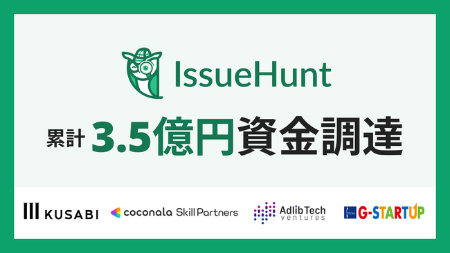 バグバウンティプラットフォーム「IssueHunt ( https://issuehunt.jp/ )」等を提供するIssueHunt株式会社(本社:東京都中央区日本橋茅場町一丁目8番1号、代表取締役:横溝一将)は、この度シリーズAラウンドにおいてKUSABI、株式会社ココナラのCVCであるcoconala Skill Partners、AdlibTechVentures、株式会社グロービスが運営するG-STARTUPファンドより、シリーズAの資金調達を実施したことをお知らせします。