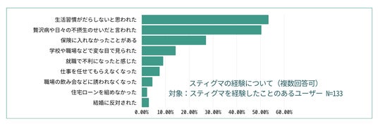 スティグマの経験は3人に1人。とくに1型糖尿病では半数が経験