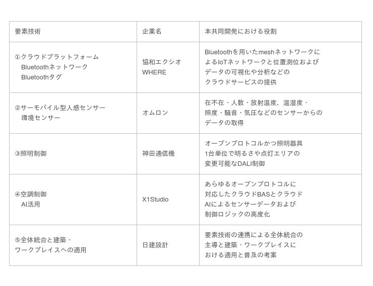 表1 要素技術と各社の役割