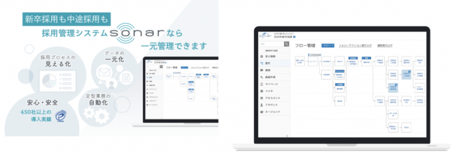 採用管理システム『SONAR(ソナー)』は、ソフトバンク、ニトリ、NTTデータなど500社以上に利用されている採用の成功のために開発された採用管理システムです。
