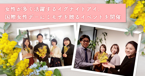 採用管理システム「SONAR(ソナー)」などHRtechサービスを提供するイグナイトアイ株式会社(本社:東京都千代田区、代表取締役:吉田崇、以下当社)は、3月8日の「国際女性デー*」に男性社員から女性社員へミモザを贈るイベントを開催いたしました。