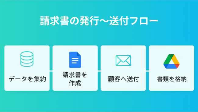 発行した請求書を顧客へ送付し、Google Driveなどのファイル管理システムへ書類を格納します。