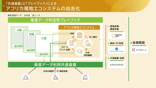 一般社団法人クロスユー(代表理事:中須賀 真一)、株式会社アクセルスペース(代表取締役:中村 友哉)、株式会社Double Feather Partners(CEO:武藤 康平)および合同会社ENKOPA Lab(Founder:Bernard Laurendeau)の4団体(以下「当事者」)は、国立研究開発法人宇宙航空研究開発機構(JAXA)が推進する宇宙戦略基金事業第二期の技術開発テーマ「衛星データ利用システム実装加速化事業(B)海外における衛星データ利用システム等の開発・実証、社会実装基盤整備(委託)」において、「日本発の衛星データ利用共通基盤を活用したアフリカ社会課題解決手法の確立」を提案し、採択されましたことをお知らせいたします。