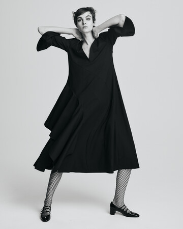 “街に踊る”をテーマに、オリジナルのテキスタイルを使用したマスキュリンなセットアップ、大胆なカッティングがドラマティックなコート、構築的なデザインが美しいドレス、メンズサイズのシャツをモデリストのテクニックでつくりあげたデザインシャツなど、着る人をより彩るコレクションとなっています。