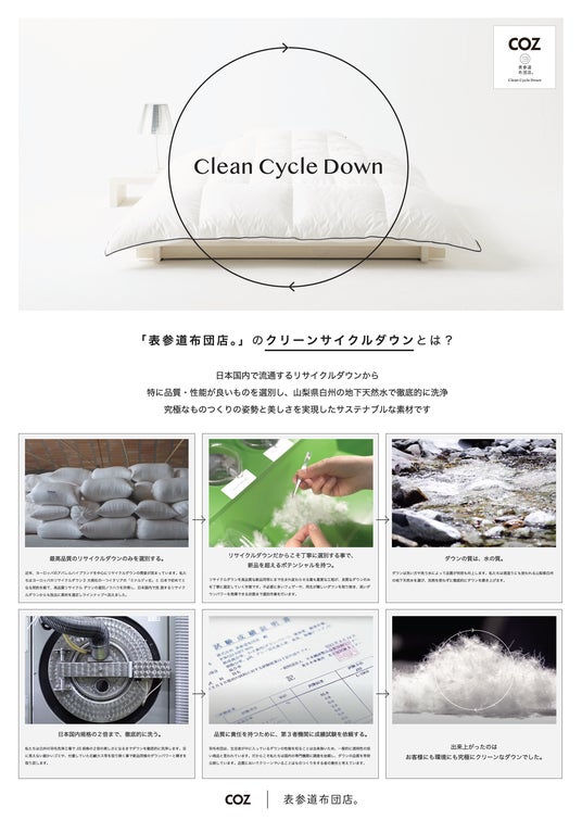 表参道布団店は、2024年秋よりダウンジャケット 【COZ 表参道布団店Clean Cycle Down】の発売を開始します。