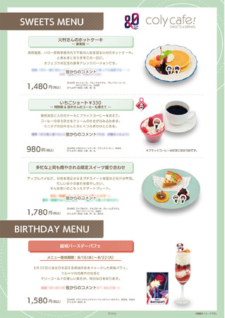 ※書き下ろしコメントについては、『coly cafe! 池袋PARCO店』限定でご覧いただけます。コラボカフェ終了後、coly cafe!公式サイトにて公開を予定しております。