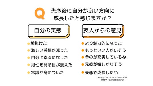 過去の恋愛を通して自分が成長できたと感じることや変わったと実感したことも調査。