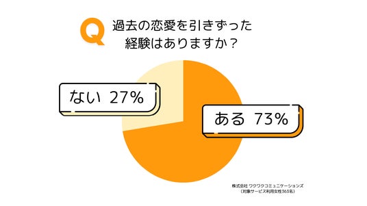 過去の恋愛を引きずった経験があると答えた人は約73%以上、ないと答えた人は約27%という結果に。