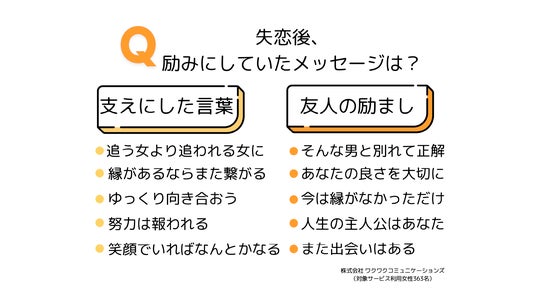 失恋経験者の女性たちから「失恋で落ち込んでいた過去の自分へのメッセージ」も寄せられました。