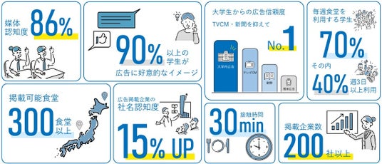 日々利用する大学食堂内での広告のため、86%の学生に認知されています。