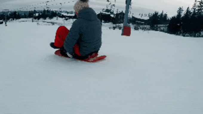 SnowBobは体重移動で舵をとりゲレンデを自由に滑ることができるエキサイティングなソリ!