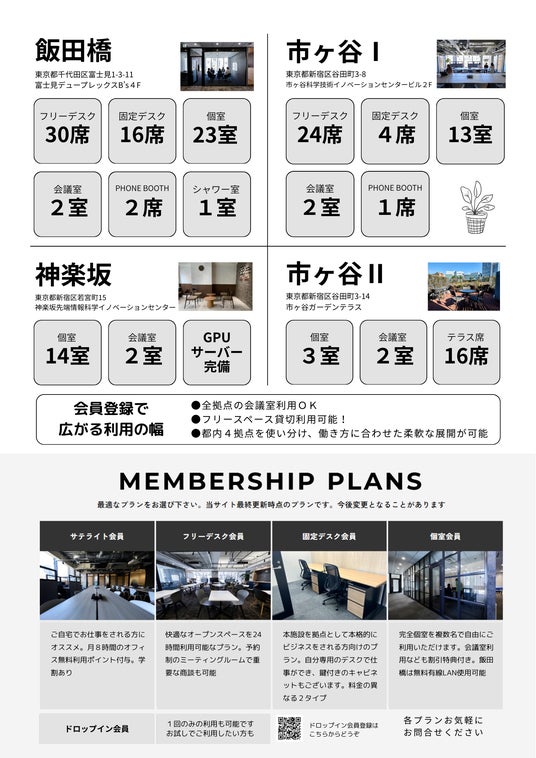 - 個室プランの3ヶ月フリーレント(対象拠点:神楽坂、市ヶ谷I)
