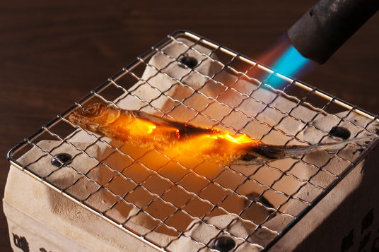 ◀黒もつ鍋で使用する、長崎県五島産の焼きあご。あごの風味をより出す為、炙ってからお鍋に入れています