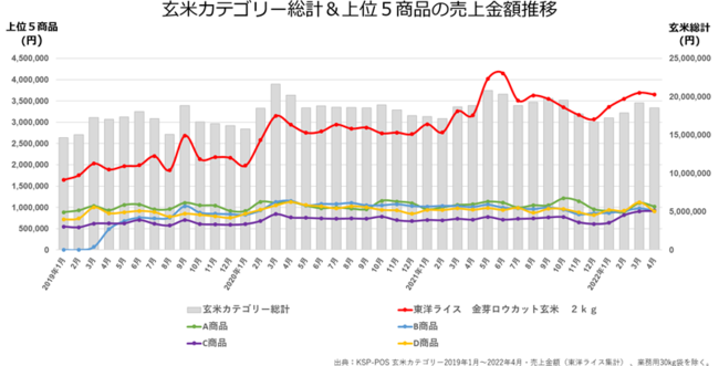 ※3 KSP-POS 白米・玄米カテゴリー2019年1月~2022年4月・売上金額(東洋ライス集計)