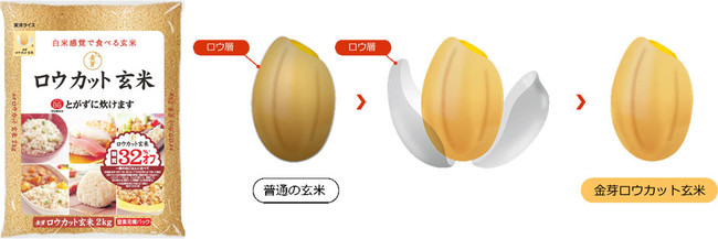 2015年3月に発売した本商品は、食べにくさなどの原因である、玄米表面を覆う防水性の高い「ロウ層」という部分を独自加工技術により均等に除去することにより生まれた玄米商品です。特徴は、1.玄米の豊富な栄養成分はほぼそのまま、2.白ごはんのようにおいしく食べられる、3.炊きやすく、消化性にも優れている、4.糖質32%オフ、カロリー30%オフ(白ごはん比較)と、従来の玄米のデメリットを払拭した、いままでにない商品です。
