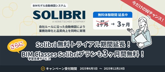 Solibri 無料体験版を通常1ヶ月間のところ、今なら3か月間無料でお試しいただけます。