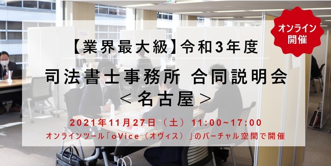 株式会社WILLCO(本社所在地:東京都港区、代表取締役社長:土屋佳大)が運営する、士業専門求人サイト「リーガルジョブボード」は、「令和3年度・司法書士事務所 就職合同説明会<名古屋>」を11月27日(土)にオンラインにて開催いたします。