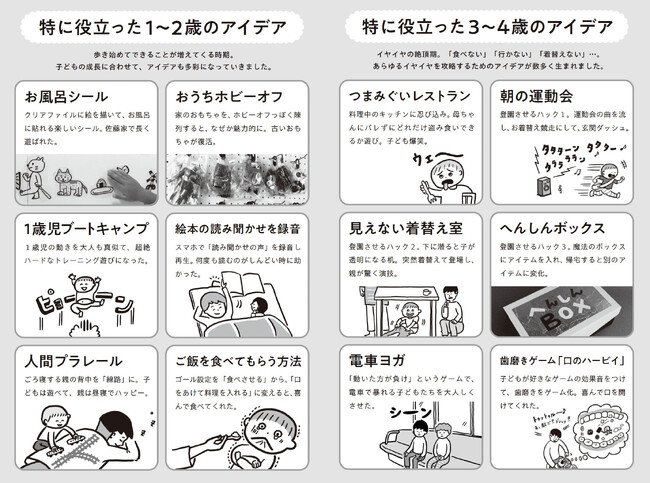 また、SNSには公開していない、佐藤家で日常的にやっていた育児ハックもまとめました。こちらはより実際に役立つアイデアがまとまっています。