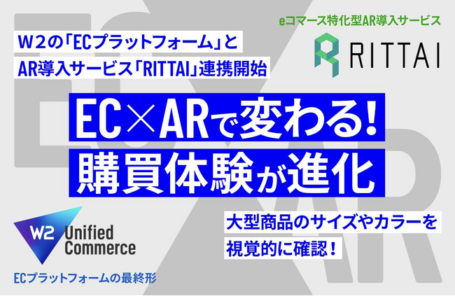 W2のECプラットフォームをご利用いただくEC事業者様は、eコマース特化型AR導入サービス「RITTAI」を自社のECサイトへ導入が可能となりました。