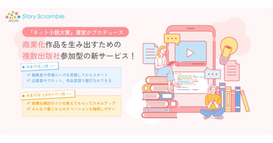 日本最大級のライトノベルコンテストを運営している「ネット小説大賞」チームがプロデュースする、「複数企業参加型の作家向けコミュニティプラットフォーム」です。「出版社のニーズ」と「作家の育成」を直結させた新しいビジネスモデルで、作品創出の場を提供いたします。