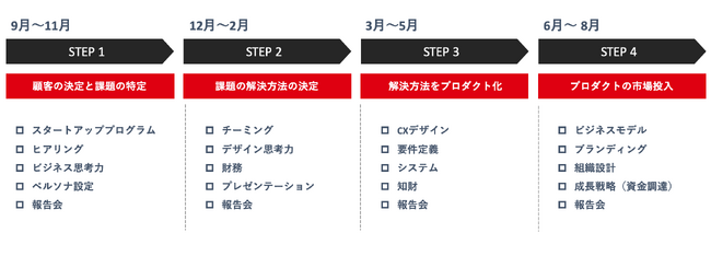 12ヶ月間のプログラムの中で、隔週のワークショップとメンタリングを通じ、製造業の新規事業開発をサポートします。