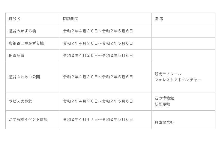 徳島県三好市では、国の緊急事態宣言及び県の方針を受け、新型コロナウイルス感染症拡大防止のため、市が所管する市内観光施設、文化施設等を休館します。
