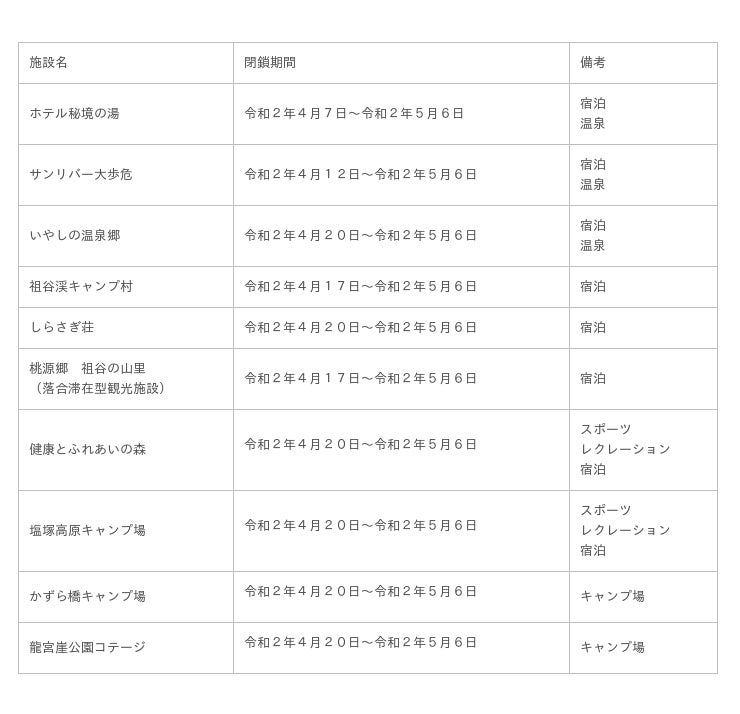 ※新型コロナウィルス感染拡大の状況により、閉鎖期間を延長する場合があります。
