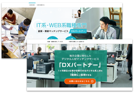 DXパートナーは、デジタル化の推進に課題を感じる地方企業にIT・WEB分野の副業・兼業を希望する人材をマッチングすることで地方企業のデジタル化支援を行うサービスです。