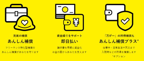 更に、『FREENANCE口座』を利用することで最大5,000万円の補償が受けられる損害賠償保険『FREENANCEあんしん補償』が無料付帯されます。