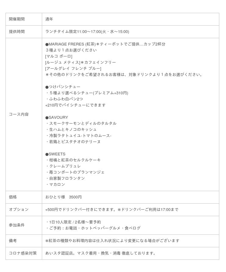 ●つけパンシチューと楽しむアフタフーンティーコースの概要